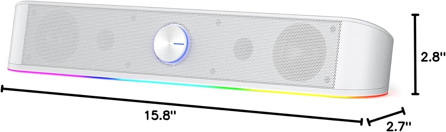 VIRELITHA-RGB Desktop Soundbar Dual Speaker Stereo Touch Control Lighting USB Powered for Computer and Desk Setup
